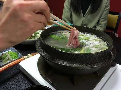 挨拶のあとは、みんなお待ちかねの国産和牛のしゃぶしゃぶです♪