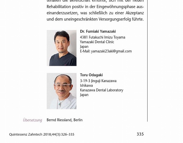 弊社との取引があります、やまざき歯科医院(富山県)の山崎史晃院長が執筆された「吸着義歯症例」について、QZ(QDTドイツ版)に掲載されました。