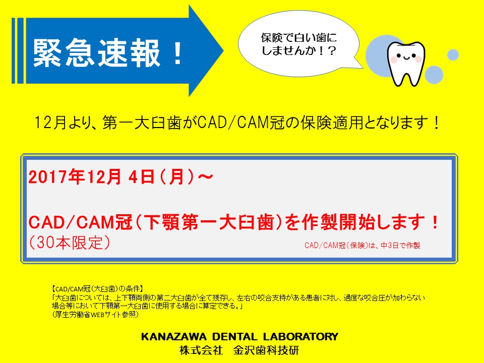 弊社では、12月4日(火)よりCAD/CAM冠を30本限定で作製開始します!